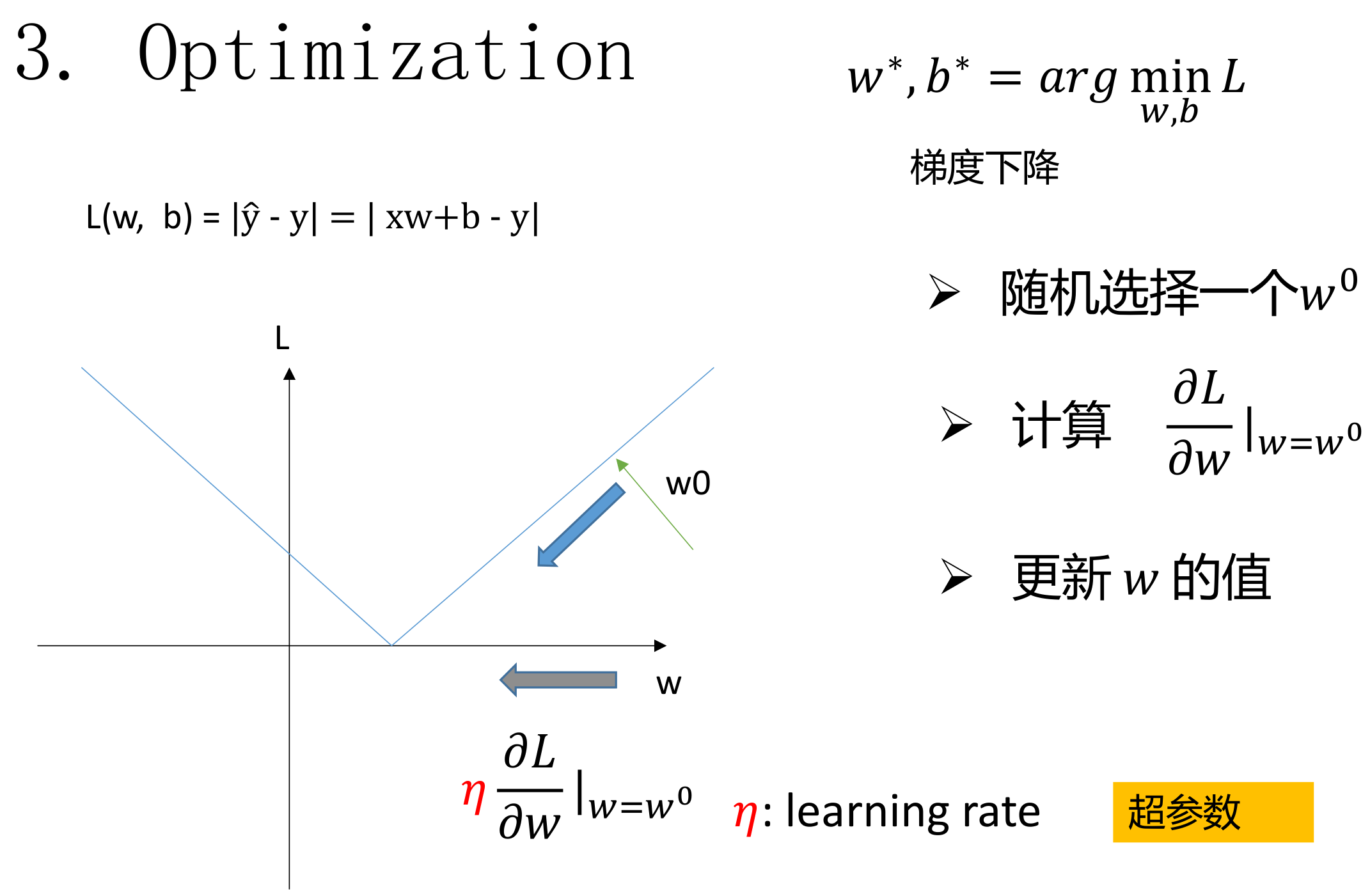 lr: 超参数,学习率 w_0, b_0:初始值 requires_grad = True:A tensor can be created with requires_grad=True so that torch.autograd records operations on them for automatic differentiation. Each tensor has an associated torch.Storage, which holds its data. epochs: 定义了执行梯度下降算法的轮数