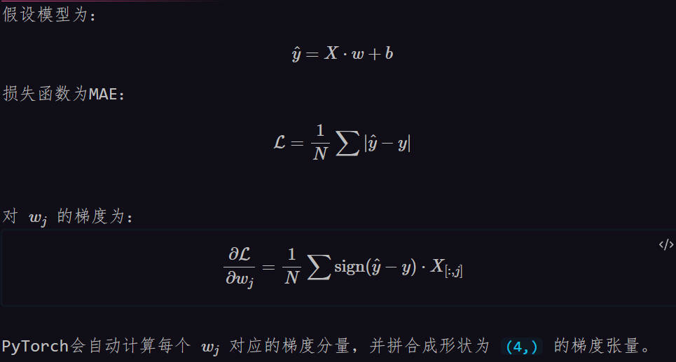 - PyTorch特性:自动微分系统会处理任意维度的张量梯度计算